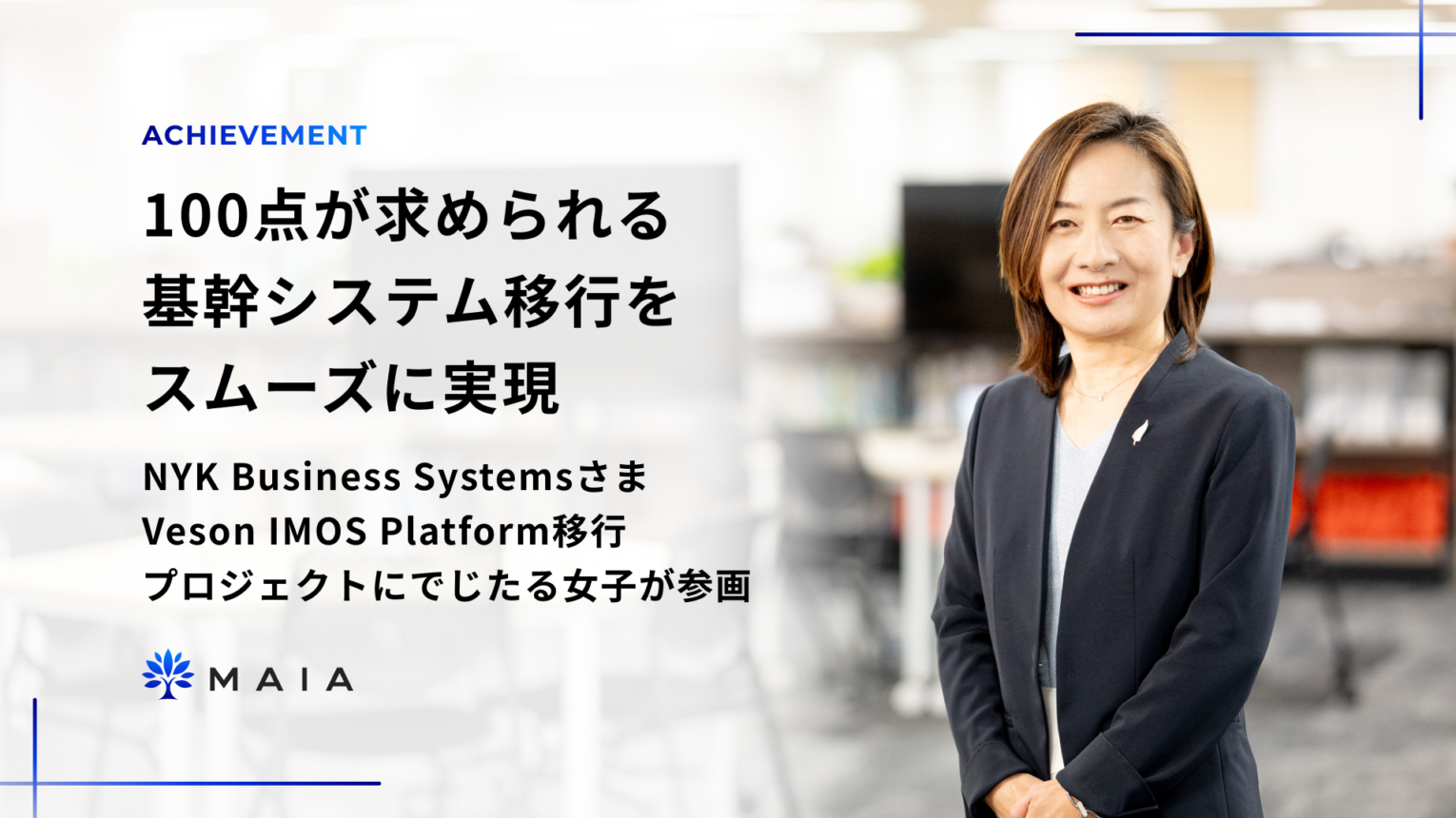 株式会社NYK Business Systemsさまでは、長年利用していた営業系システムから「Veson IMOS Platform」への移行を進めるなかで、膨大な契約データの精緻な入力が大きな課題となっていました。この重要工程に、MAIAが育成した女性デジタル人材「でじたる女子」が2022年6月より参画。契約データの複雑性や例外処理にも柔軟に対応し、プロジェクトを支援しました。